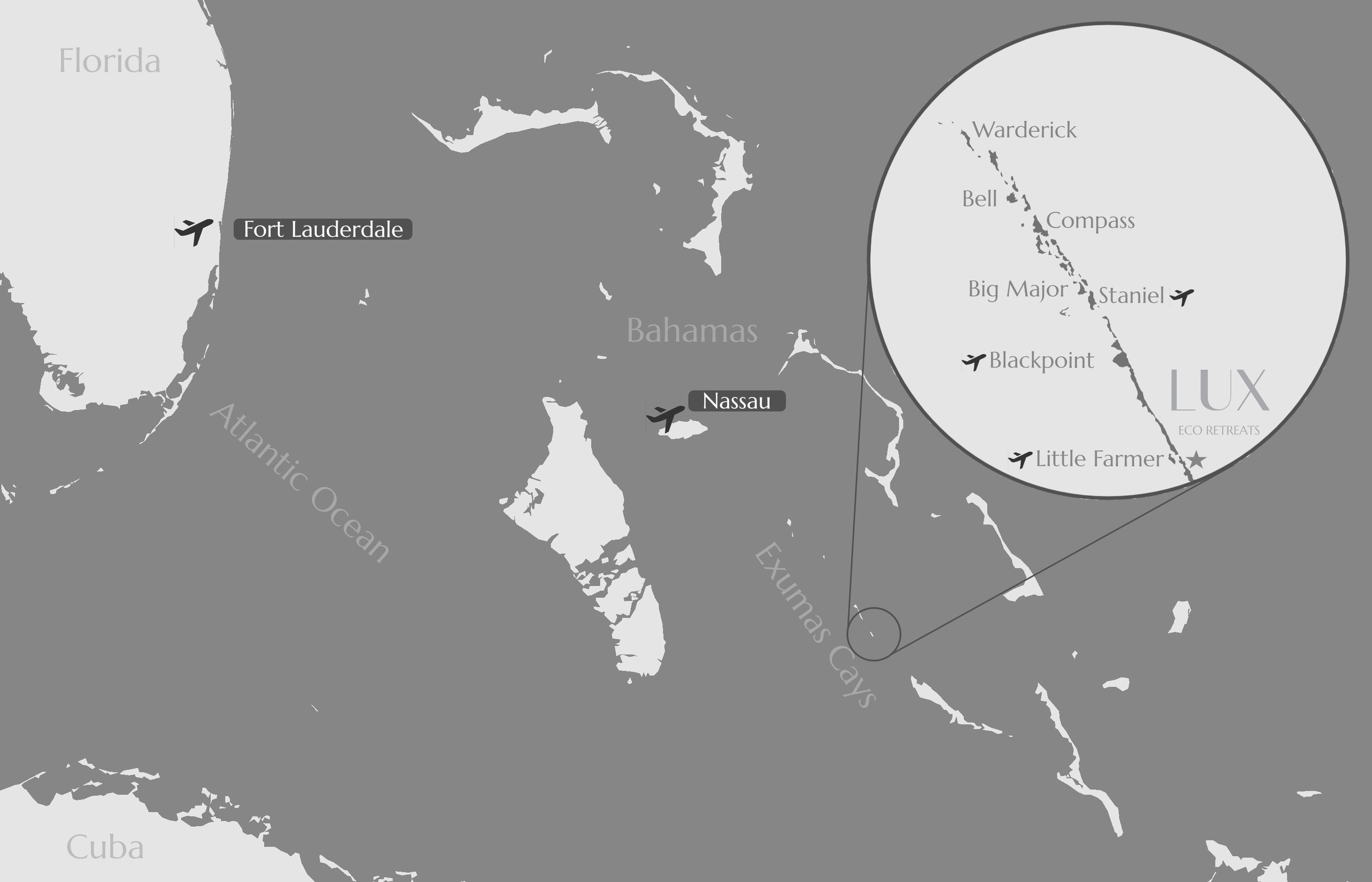 Traveling from Florida or Nassau to Luxumas is where your trip begins. We have handpicked the best partners in private charter (sea)planes, powerboats, and sailboat companies. Additionally, there is by-the-seat options through various companies, and our MIH (Make it Happen) team is pleased to assist you in fully customizing your journey.